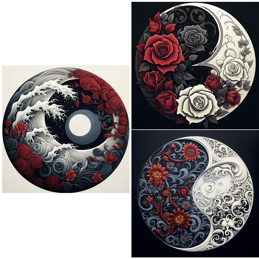 Yin And Yang Flowers-Full Round Diamond Painting-30x30cm