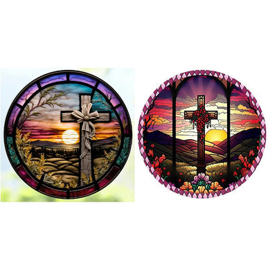Stained Glass Cross-Full Round Diamond Painting-30x30cm