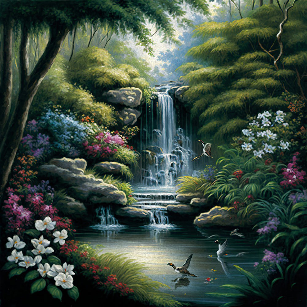 Secluded Forest Lake-Full Round Diamond Painting-30x30cm