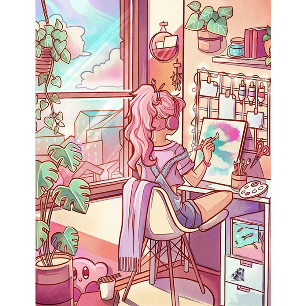 Cartoon Girl-Full Round Diamond Painting-50x60cm-Large Size