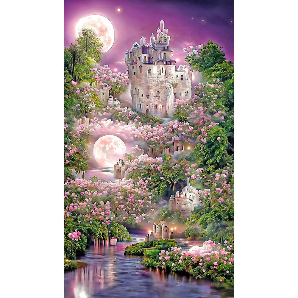 Pink Rose Castle Under The Moon-Full Drill Diamond Painting-40x70CM