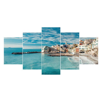 5-pictures Waterside City - Full Drill Diamond Painting - 95x45cm