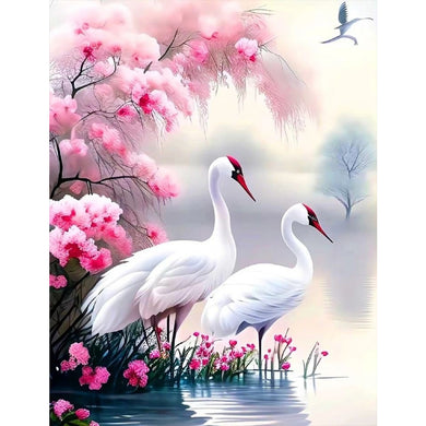 White Crane-Full Round Diamond Painting-50x60cm-Large Size