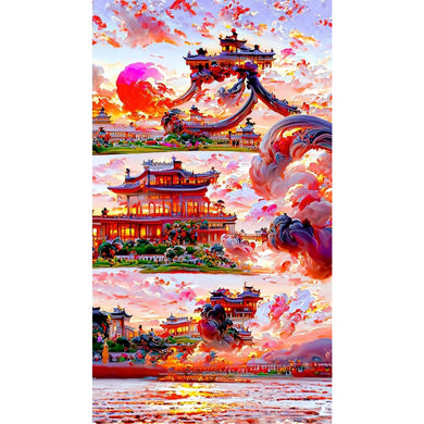 Lake Island House-Full Drill Diamond Painting-40x70cm