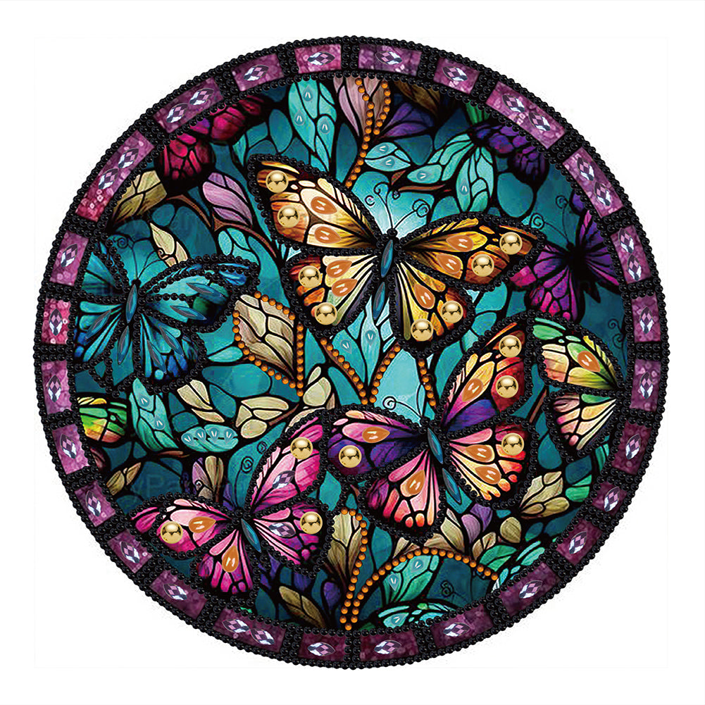 Stained Glass Butterfly-Partial Special Diamond Painting-30x30cm