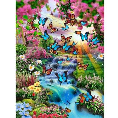 Butterfly Flower Waterfall-Full Round Diamond Painting-30x40cm