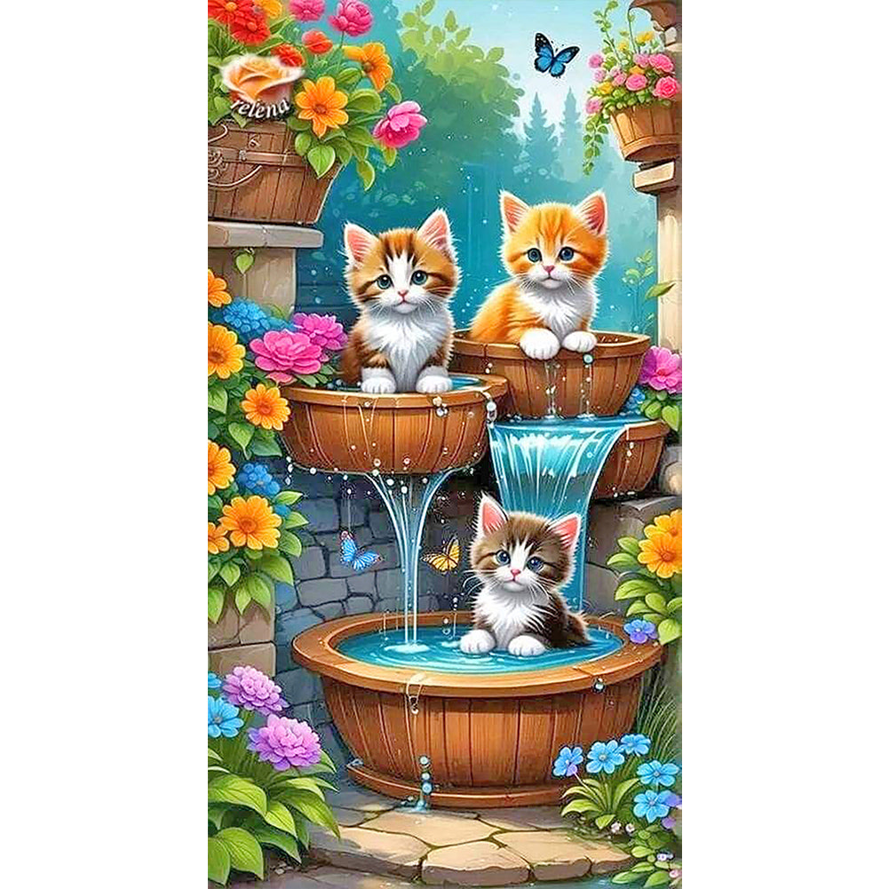 Cat In Pool-Full Round Diamond Painting-35x65cm-Large Size