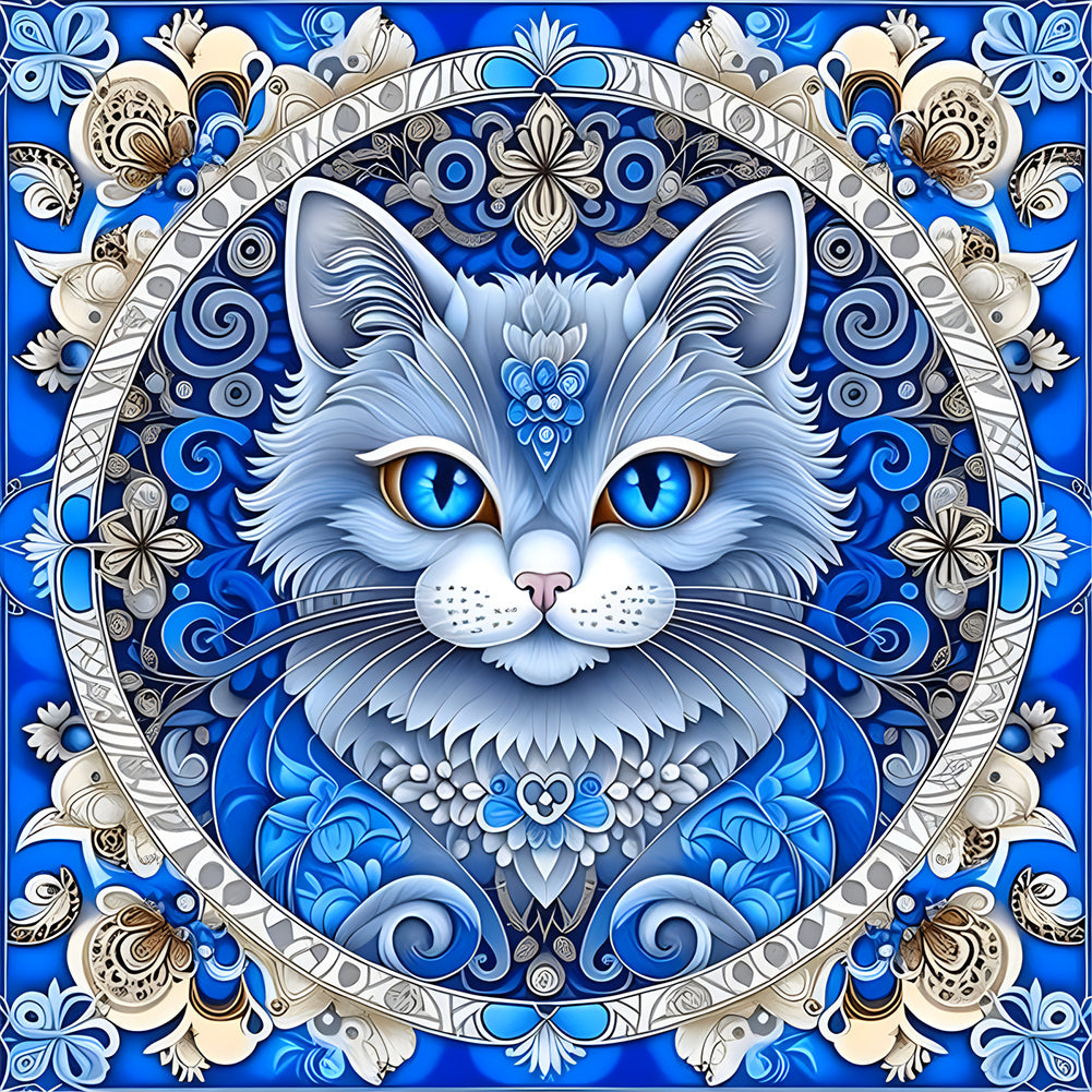 Mandala Pattern Cat-Full Round Diamond Painting-30x30cm