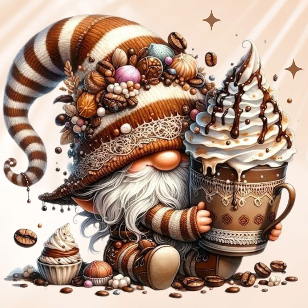 Coffee Gnome-Full Round Diamond Painting-30x30cm