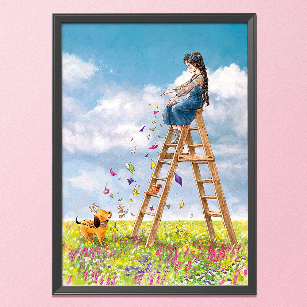 53x72cm DIY Stamped Canvas Cross Stitch Kits Embroidery Color Girl Figure Patterns 11CT Needlework Sets House Decor Gift