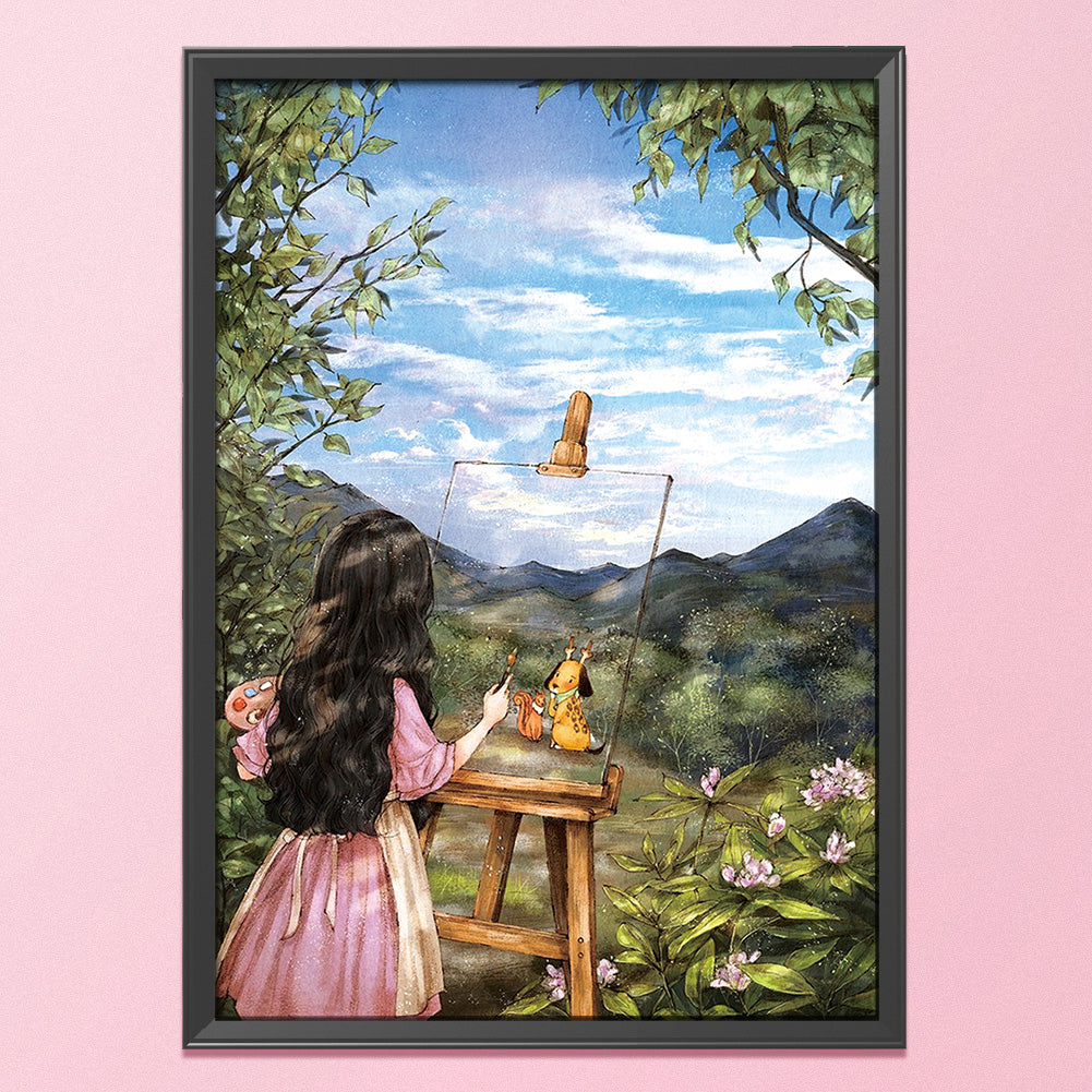 53x72cm DIY Stamped Canvas Cross Stitch Kits Embroidery Color Girl Figure Patterns 11CT Needlework Sets House Decor Gift