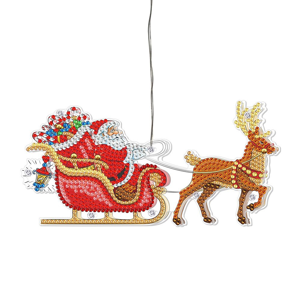 5D Christmas Diamond Painting Hanging Light Festive Rhinestone LED Lamp Pendant DIY Home Party Art Craft Decoration