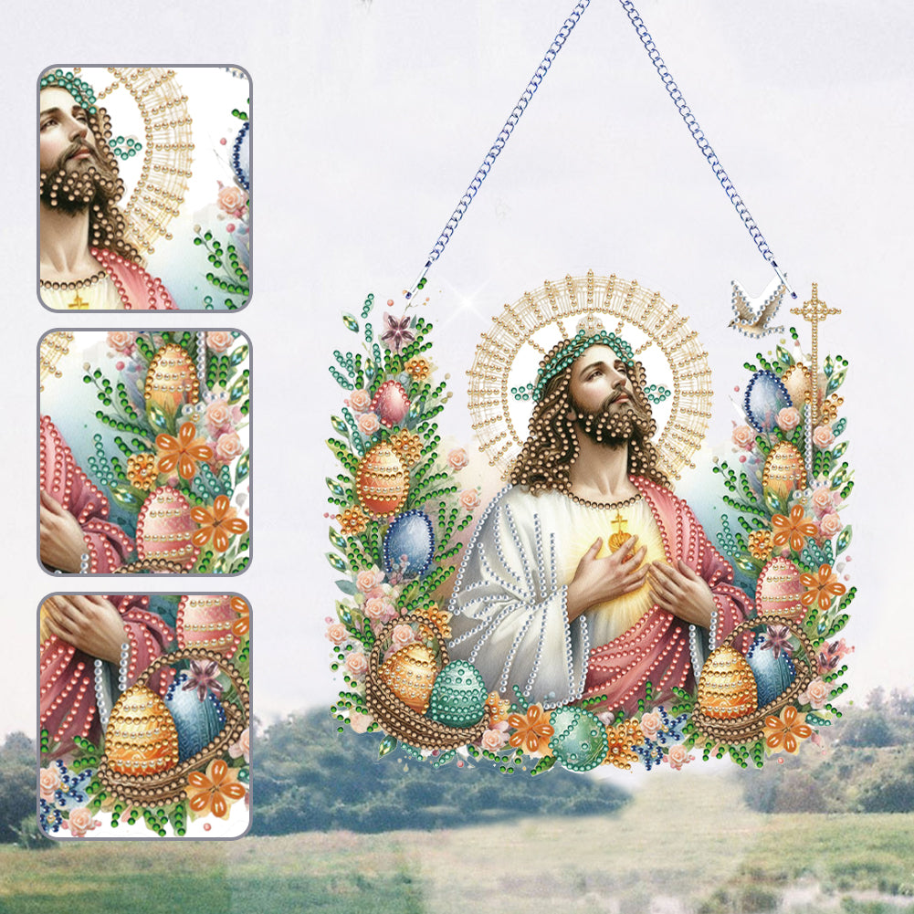 Jesus-Acrylic Single Side Diamond Pendant