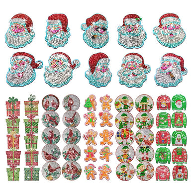 10PCS Christmas-Wooden Diamond Painting Coaster