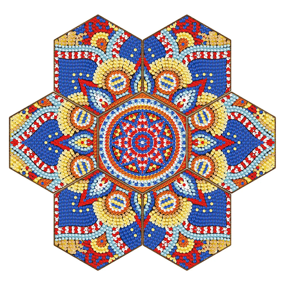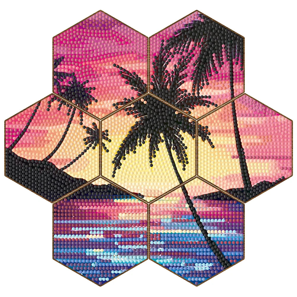 7pcs/set-Night Sky-Wooden Diamond Coaster