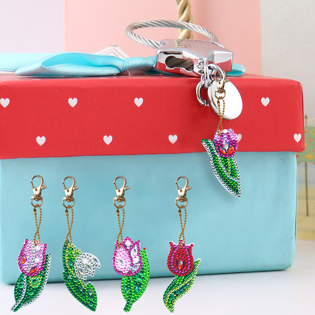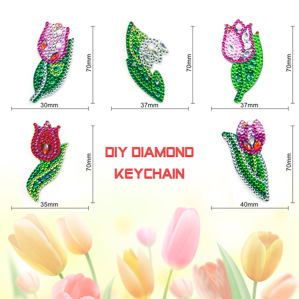 5pcs/set DIY Full Drill Special Shaped Diamond Painting Flower Keychain Cross Stitch Embroidery Key Rings