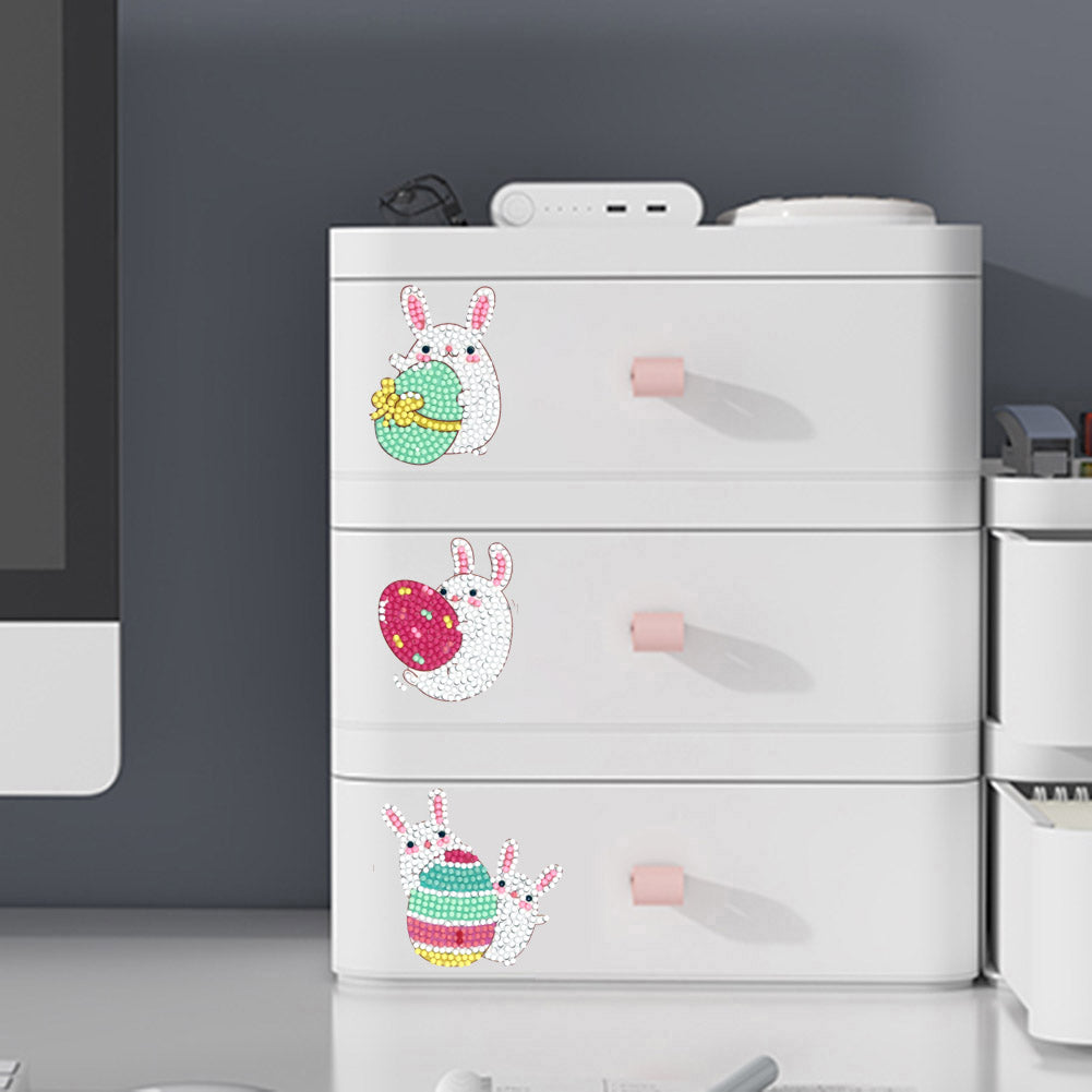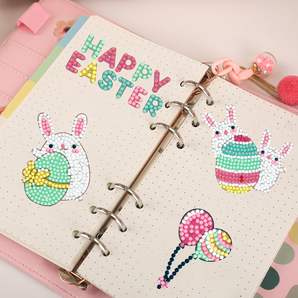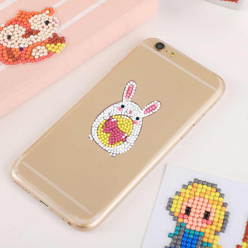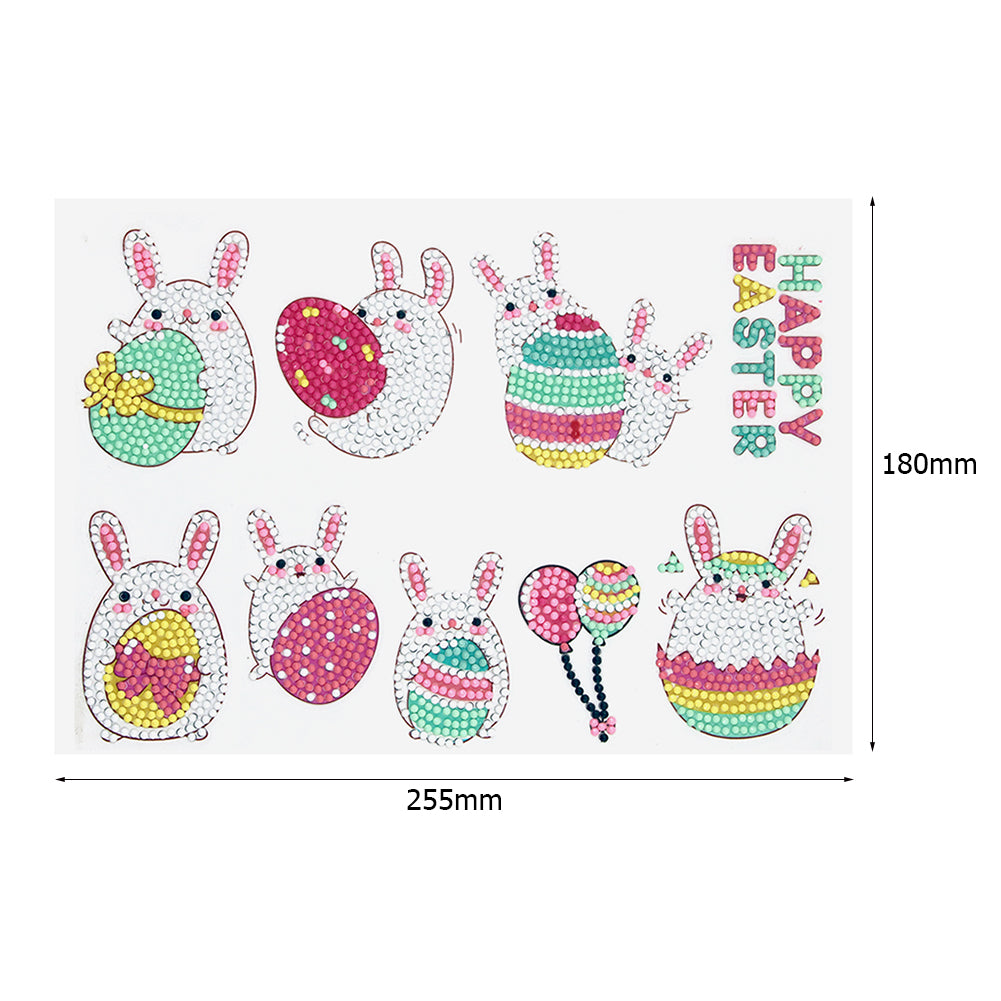 8pcs Rabbit Cartoon DIY Kids Round Full Drill Diamond Painting Stickers By Numbers Kits Embroidery Cross Stitch Manual Stickers Decoration Gifts