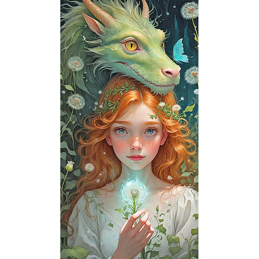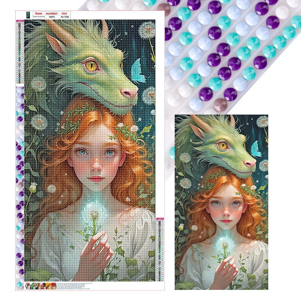 Dragon And Girl-Full Round Diamond Painting-40x75cm-Large Size