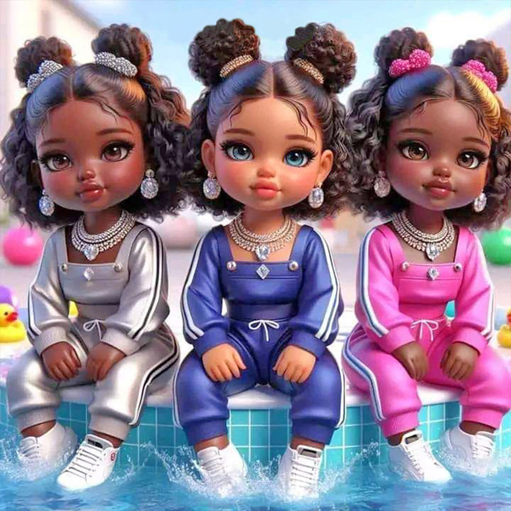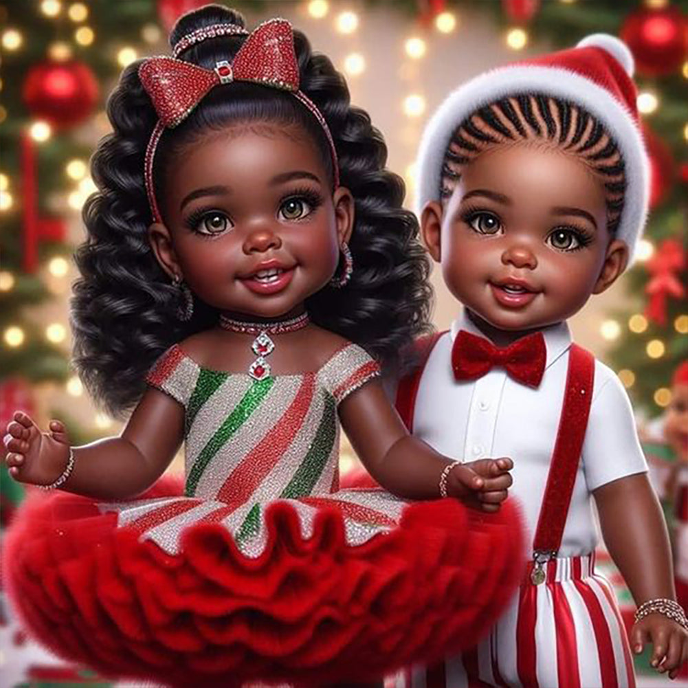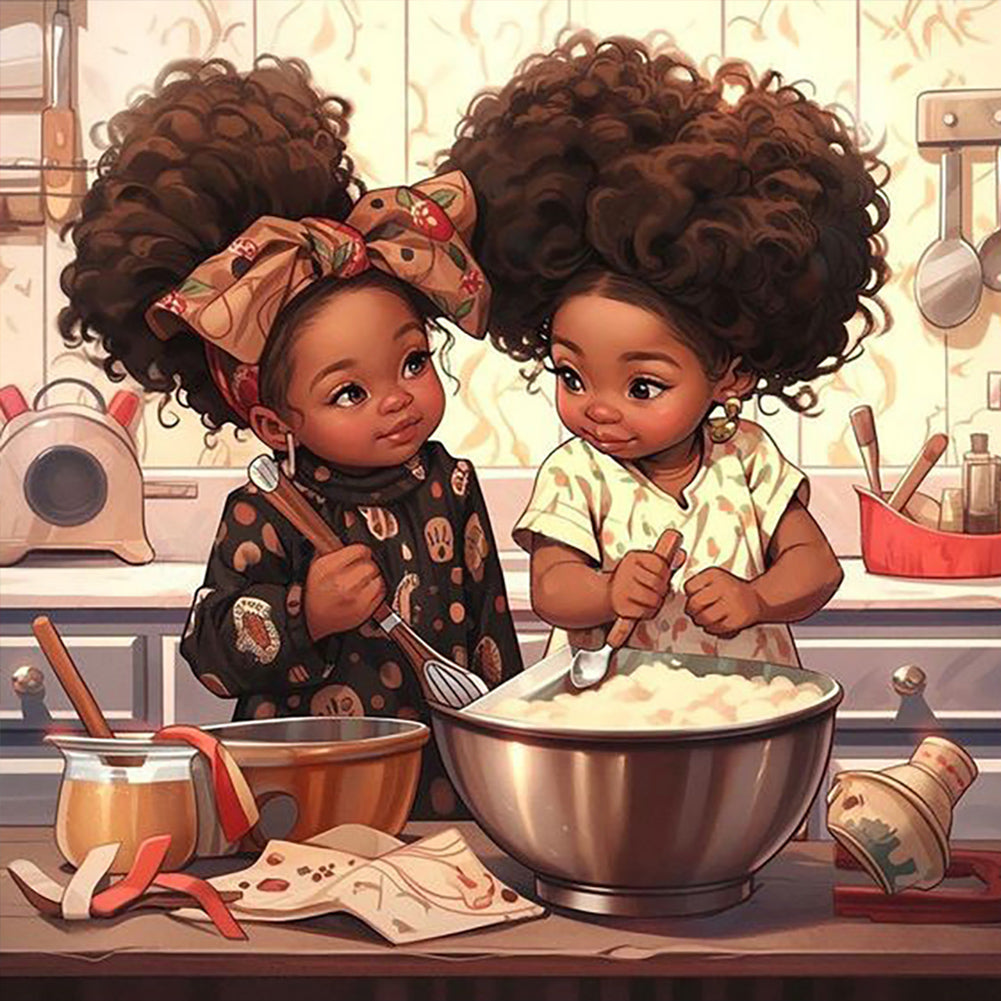 • Load image into Gallery viewer, African American Girl-Full Round Diamond Painting-40x40cm