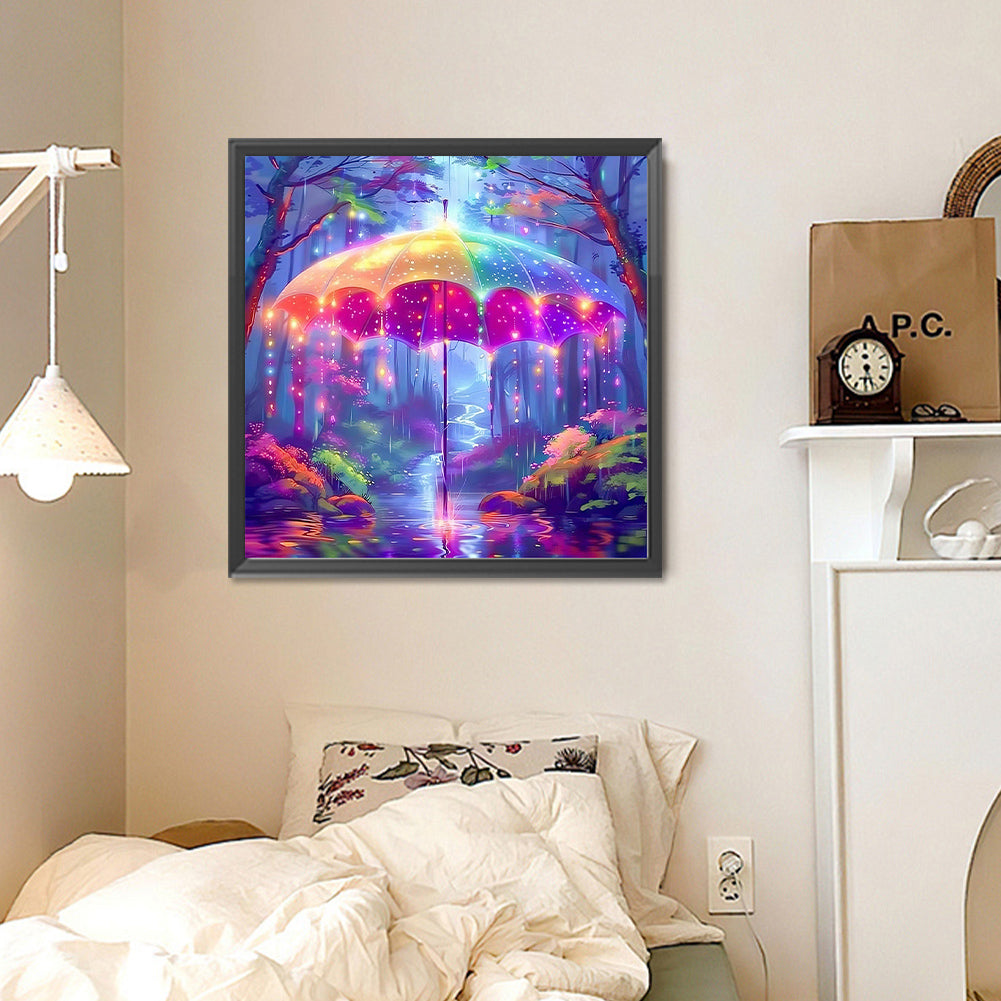 Colorful Umbrella In The Forest-Full Round Diamond Painting-30x30cm-1537067