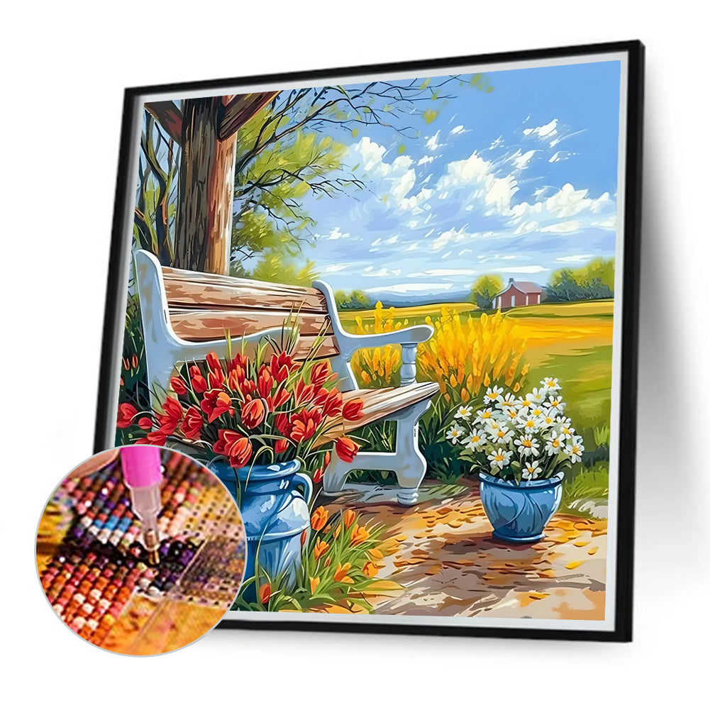 • Load image into Gallery viewer, Country Bench-Full Round Diamond Painting-40x40cm