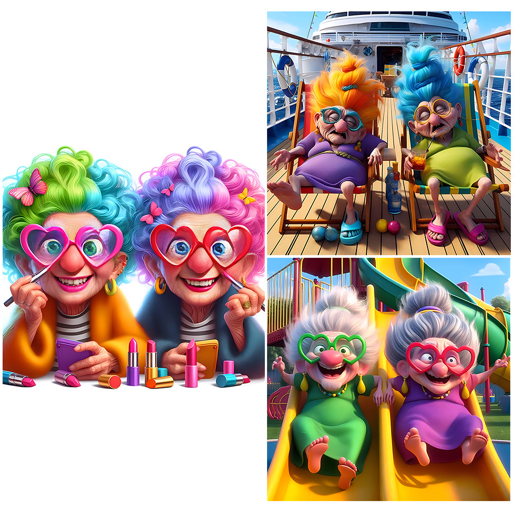 Funny Grandma-Full Round Diamond Painting-30x30cm