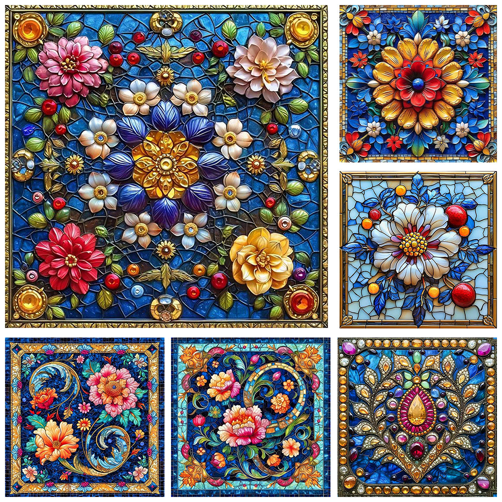 Glass Style Flowers-Full Round Diamond Painting-40x40cm