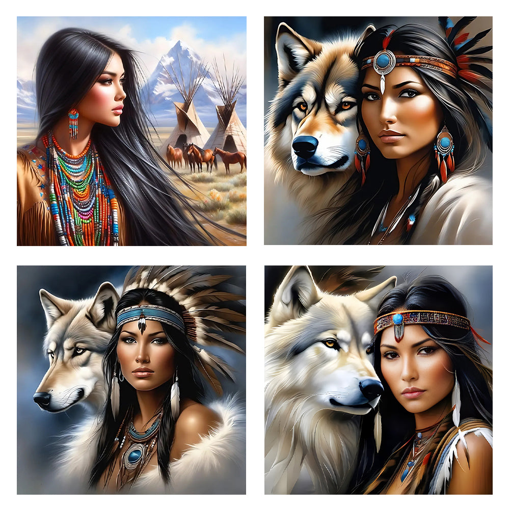 Indian Woman-Full Round Diamond Painting-40x40cm