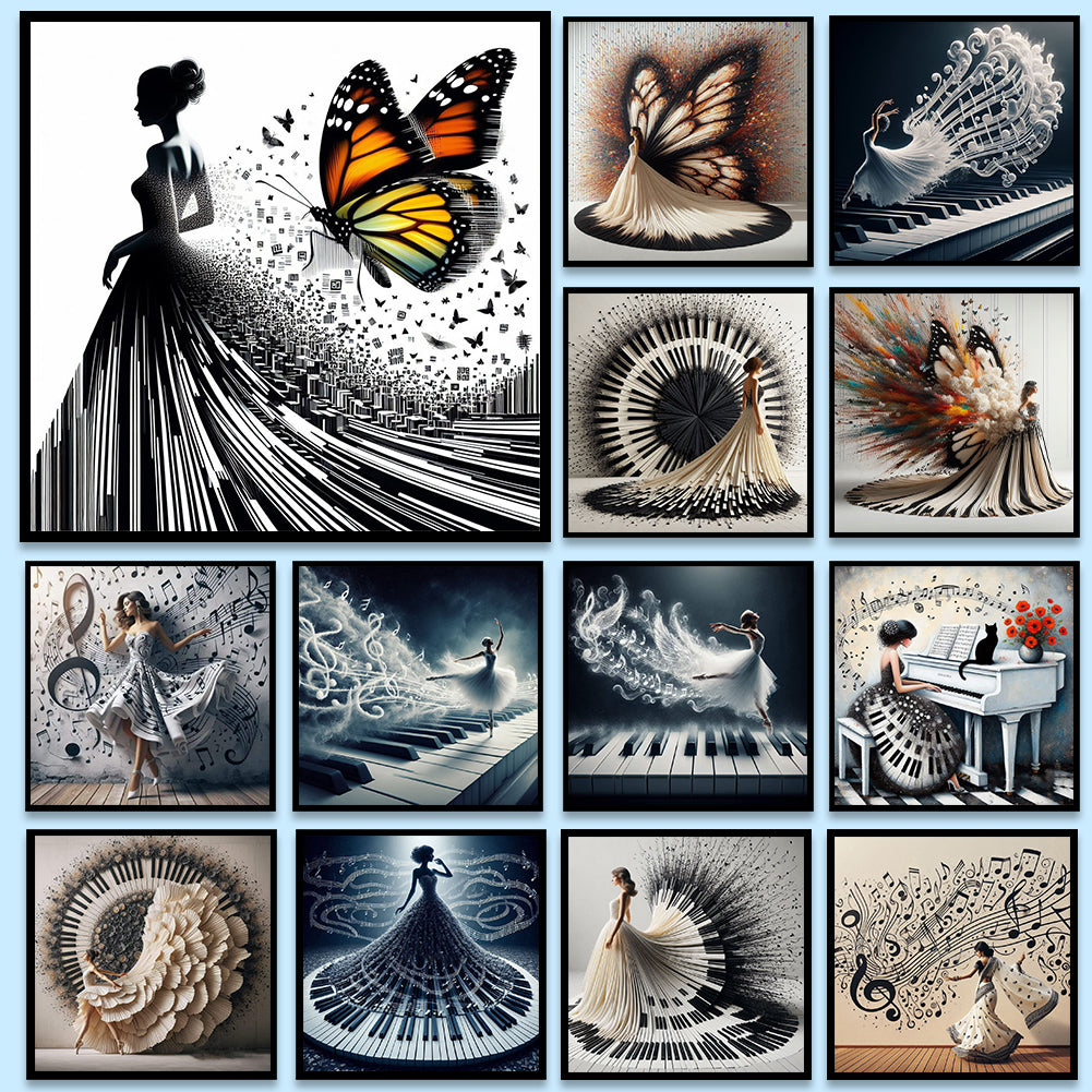 Piano Girl-Full Round Diamond Painting-40x40cm