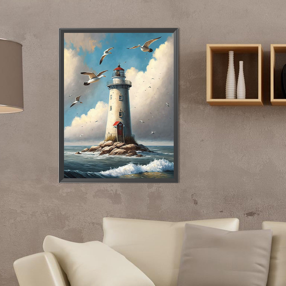 Seaside Lighthouse-Full Round Diamond Painting-30x40cm