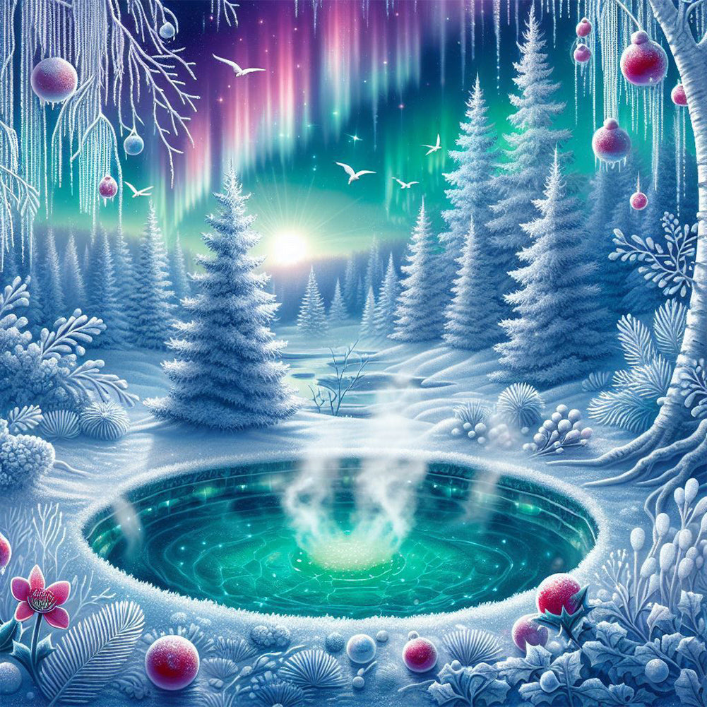 Winter Aurora Snow Scene-Full Round Diamond Painting-40x40cm
