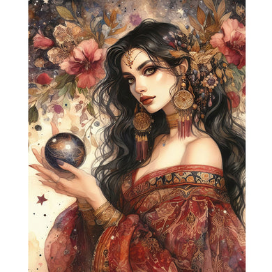 Tarot Card Crystal Ball Woman-Full Round Diamond Painting-40x50cm