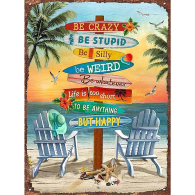 Beach Woodcut-Full Round Diamond Painting-30x40cm-1512307
