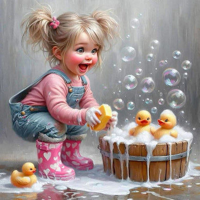 Cute Little Girl-Full Round Diamond Painting-40x40cm-1526190