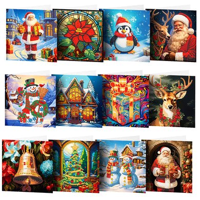 12Pcs/Set Christmas-Diamond Greeting Cards