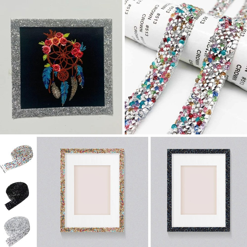 Free Cutting---According to your needs, this wrapped rhinestone ribbon can be cut to any length or shape and easily pasted on different surfaces. 6 colors for your choice.