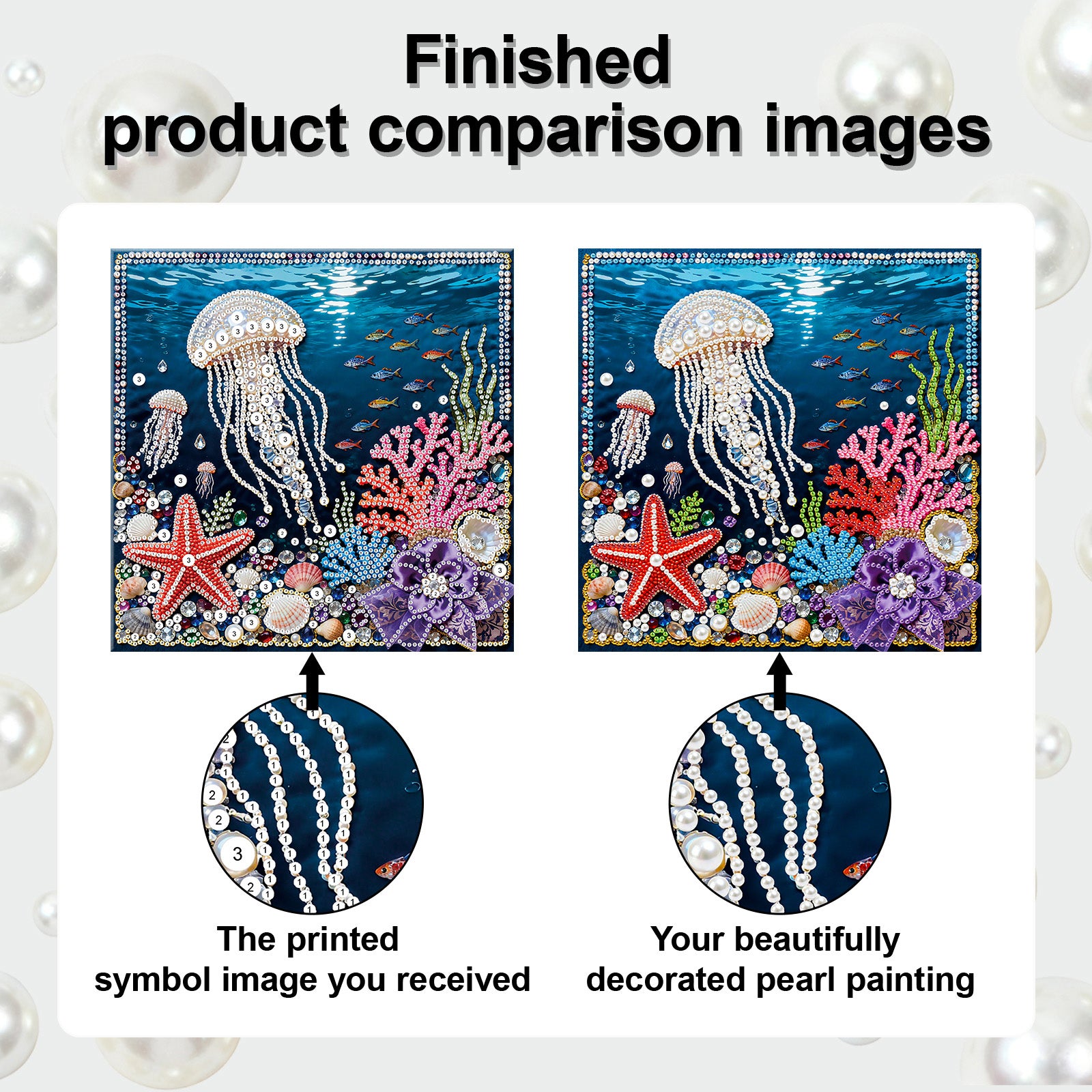 Jellyfish-Partial Pearl Painting Kit with Frame-25x25cm