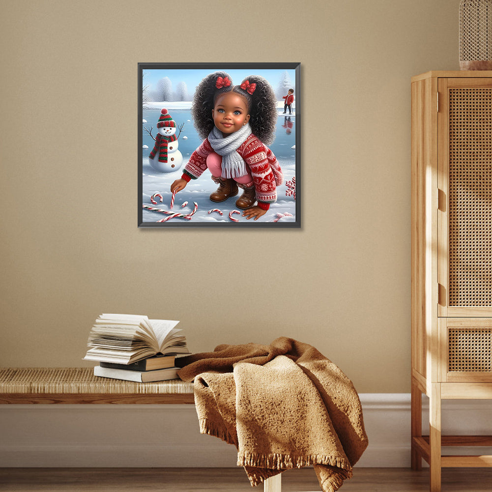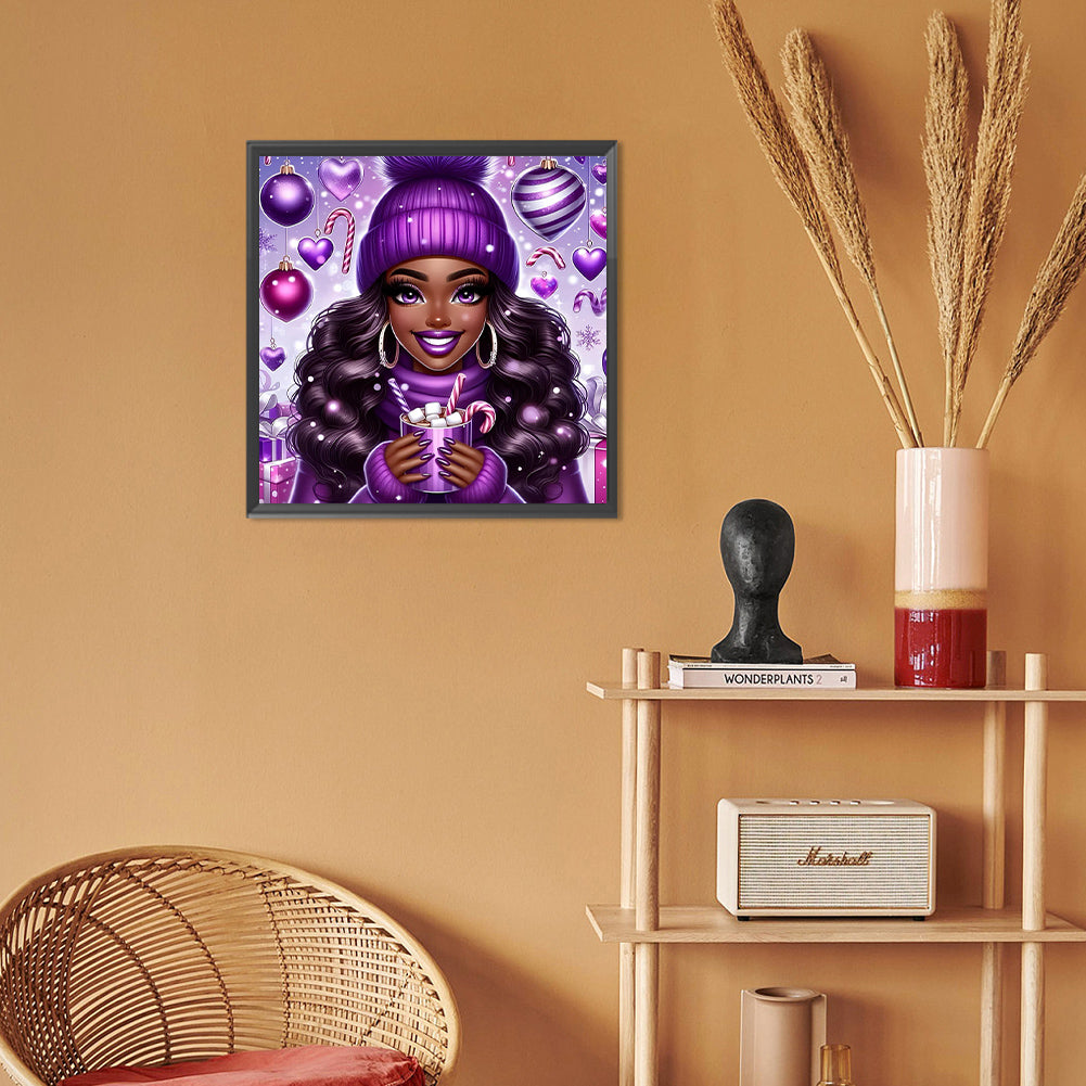 • Load image into Gallery viewer, African American Girl-Full Round Diamond Painting-30x30cm