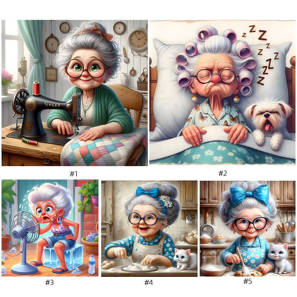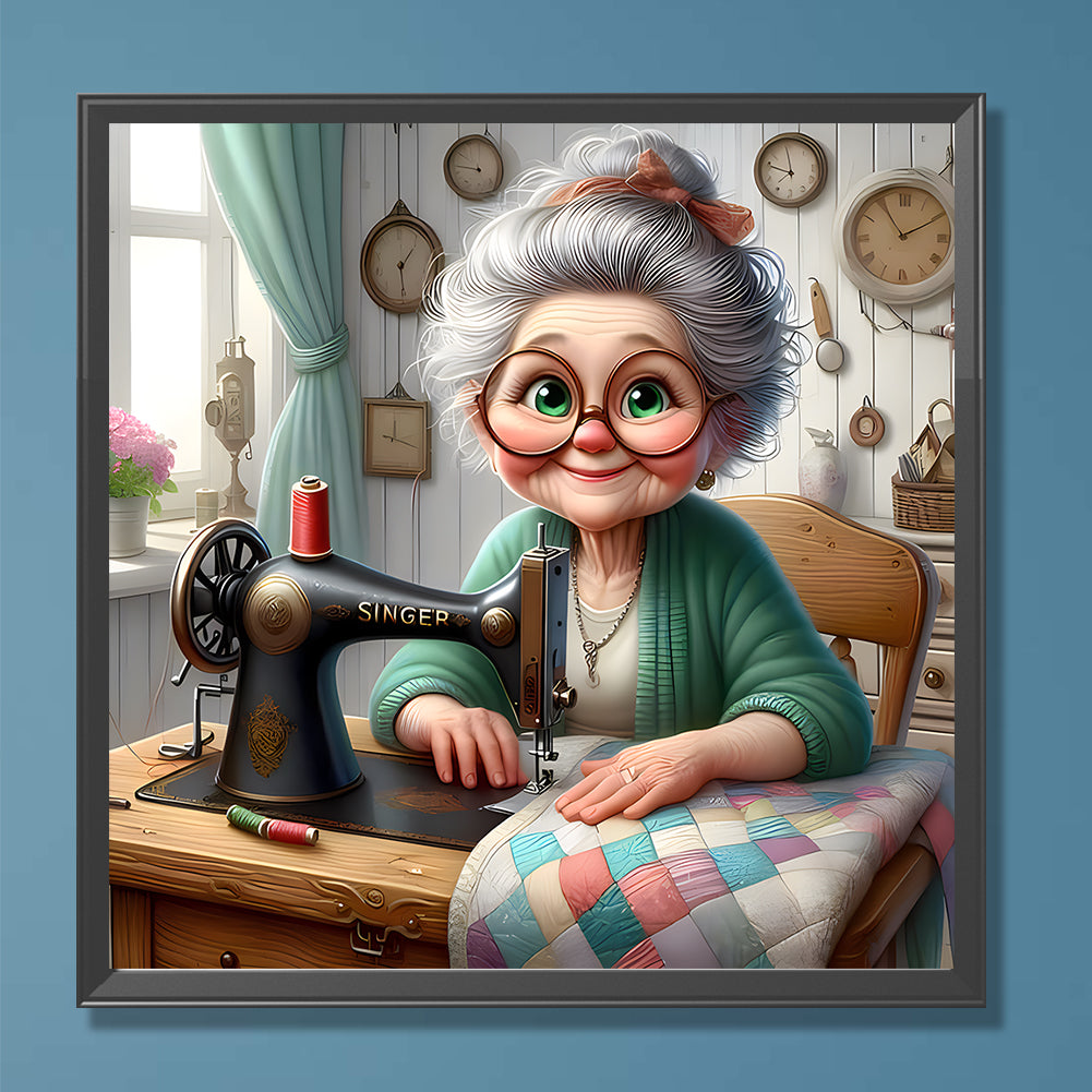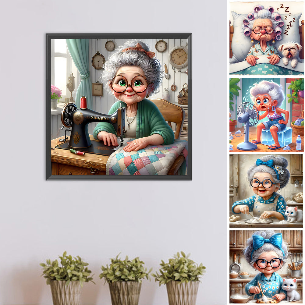 Funny Granny-Full Round Diamond Painting-30x30cm