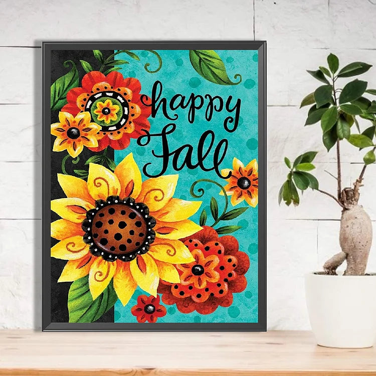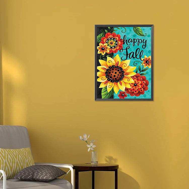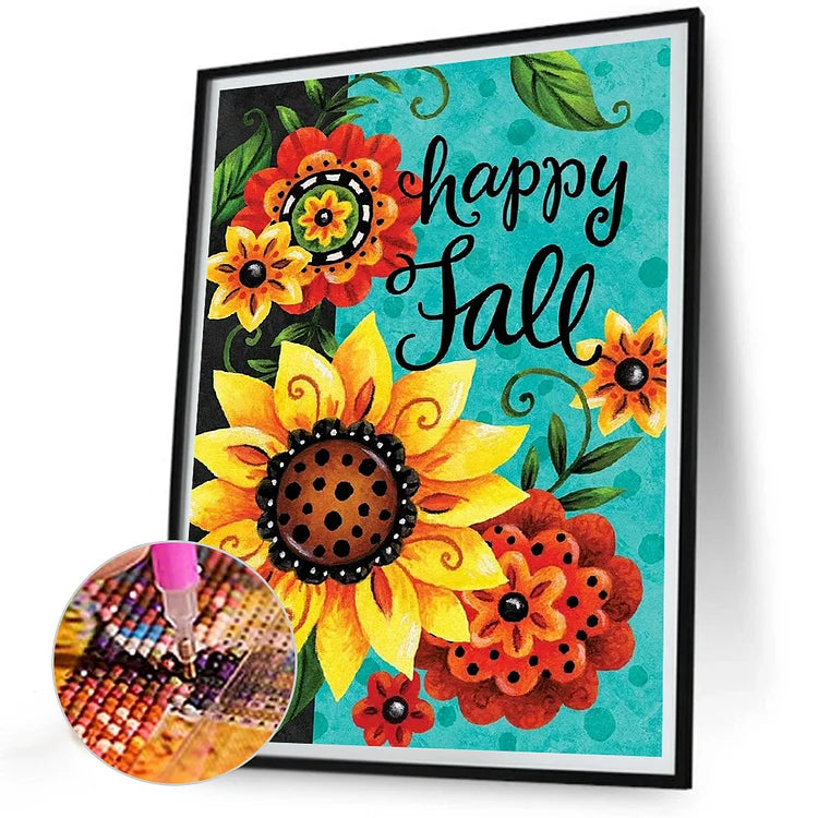 Sunflower Calligraphy And Painting-Full Round Diamond Painting-30x40cm