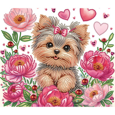 Flower Yorkshire Terrier-Partial Special Diamond Painting-35x30cm