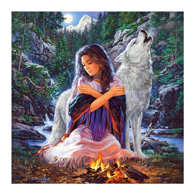Women and Wolf - Full Drill Diamond Painting